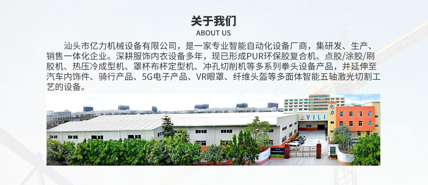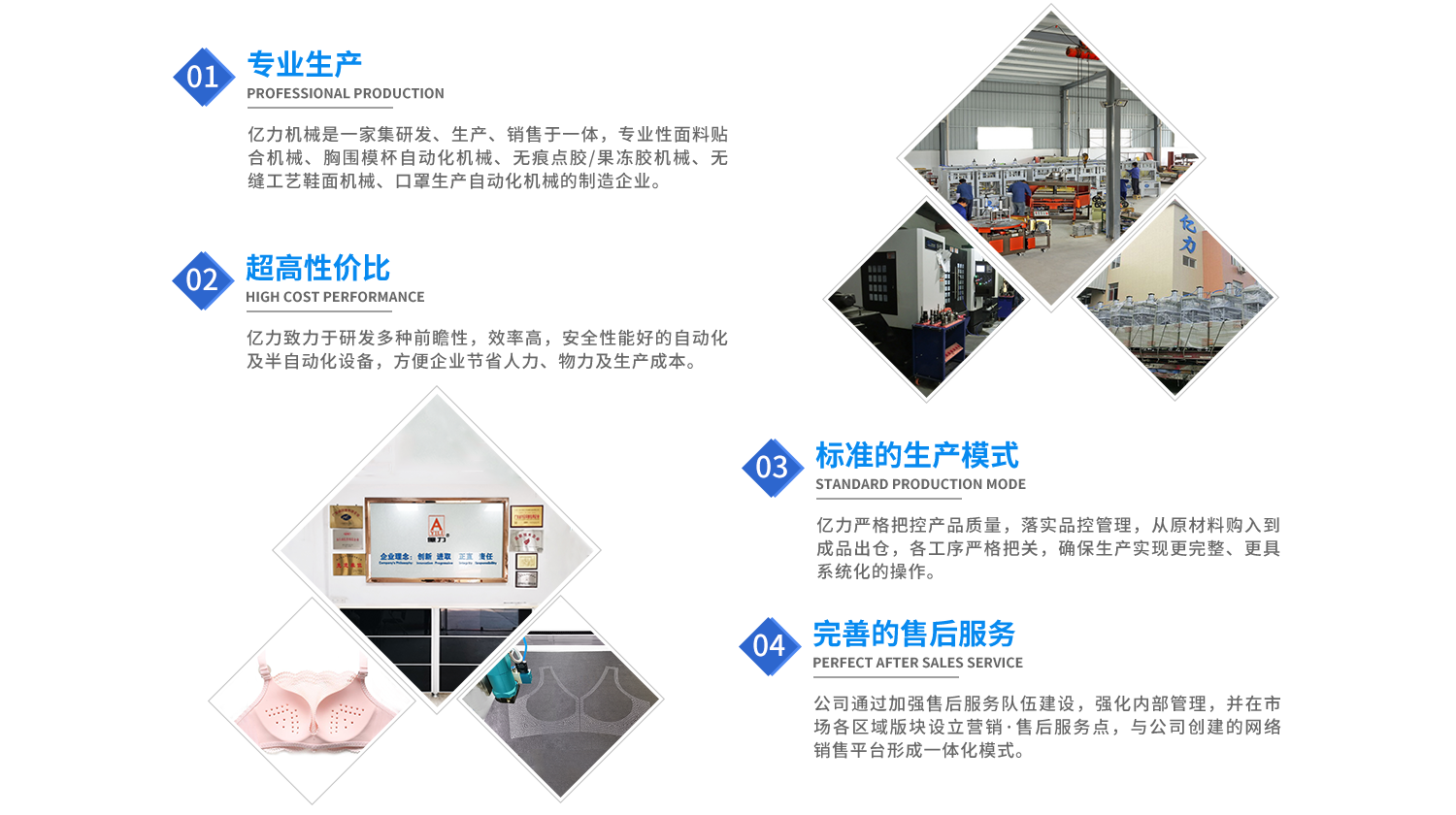 汕頭市億力機(jī)械設(shè)備有限公司網(wǎng)站正式上線! 汕頭市億力機(jī)械設(shè)備有限公司是一家集研發(fā)、生產(chǎn)銷售于一體的專業(yè)性面料貼合機(jī)械、胸圍模杯機(jī)械、無縫工藝鞋面機(jī)械、口罩生產(chǎn)線和焊耳帶機(jī)械企業(yè)。